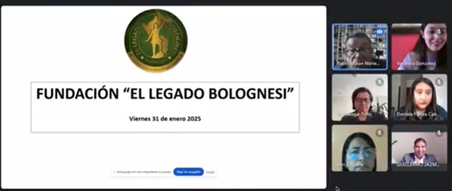 Durante el encuentro virtual, la Fundación “El Legado de Bolognesi”, realizo una breve exposición sobre las acciones que actualmente se encuentran realizando, en las diferentes áreas de beneficencia, asistencia o bienestar social, educación, cultura, científicas, artísticas, literarias, deportivas, salud, patrimonio histórico cultural indígena, investigación, desarrollo, así como; el apoyo que se realiza a las comunidades más vulnerables de nuestra sociedad, promoviendo valores de solidaridad, unidad y bienestar.